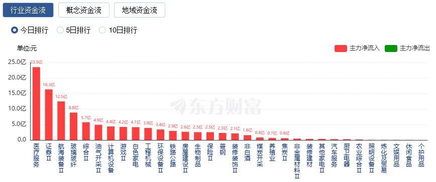 行业资金流向:23.50亿净流入医疗服务